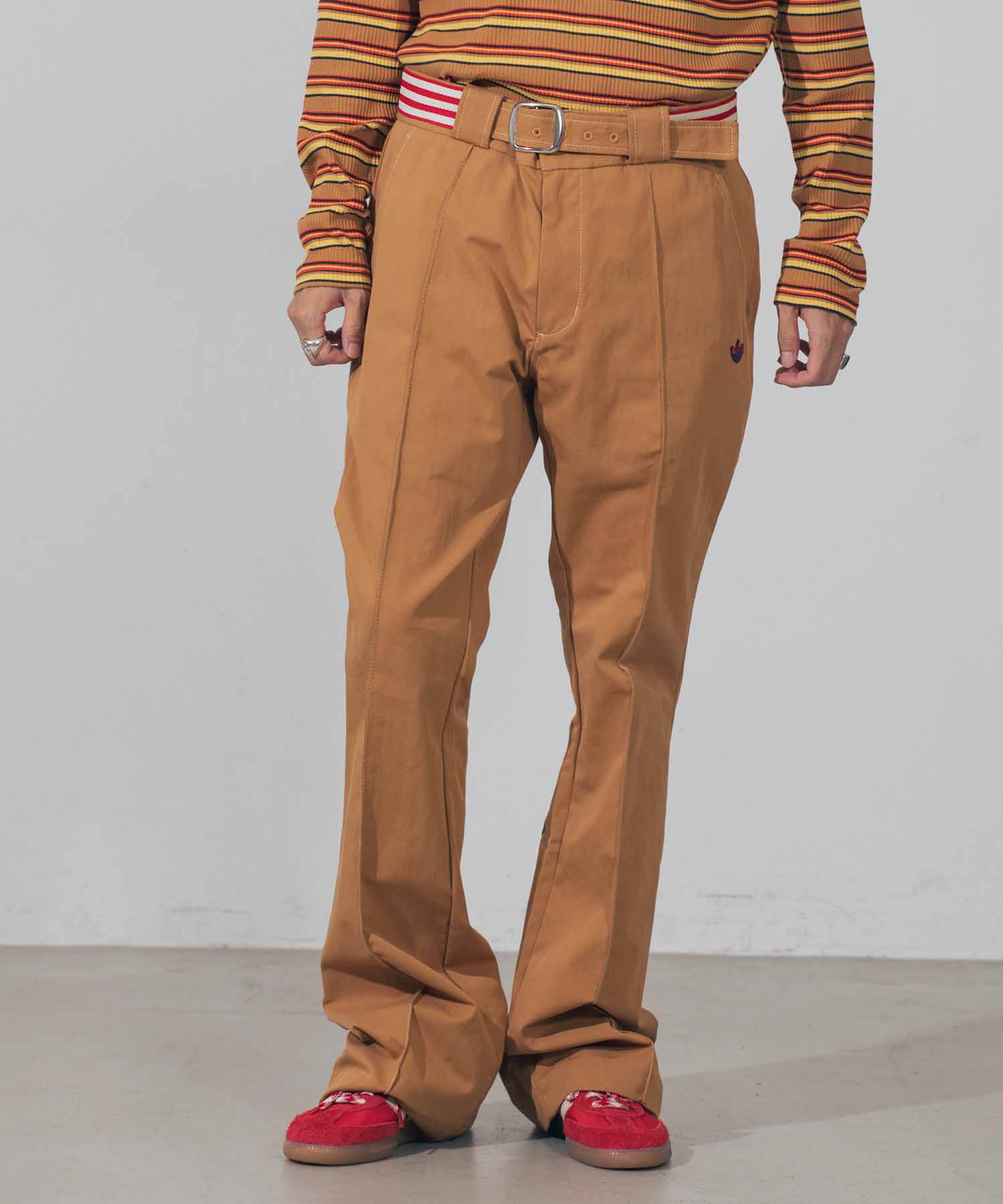 adidas/WB CHINO PANT/HG6268 ベージュ カラー ベージュ サイズ S:ウエスト:88cm,ヒップ:102cm,股上:30cm,股下:86cm M:ウエスト:92cm,ヒップ:108cm,股上:32cm,股下:86cm 素材 綿59%/ナイロン41% 原産国 中国 メーカー品番 122222031004 コメント \adidas Originals×WALES BONNERコラボレーションアイテム/【デザイン】・アディダスオリジナルスとウェールズ・ボナーによる2022年春夏コレクション・綺麗なシルエットのベルト付きチノパンです。