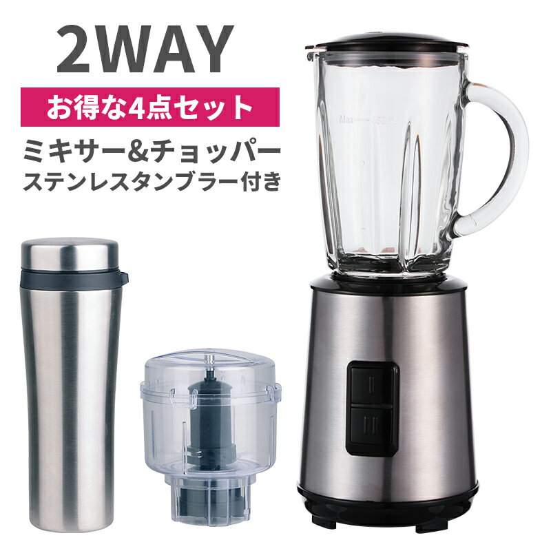 ※表紙 ※背表紙 ステンレスマルチブレンダー! ミキサー、チョッパー、調理後そのまま使えるタンブラー付き! 2段階スイッチのシンプル操作! 1台で刻む、混ぜるが可能! 付属のタンブラーは、調理後そのまま持ち運び可能! スタイリッシュなステンレス製! 【商品詳細】 ミキサーサイズ(約):15×11.5×31cm チョッパーサイズ(約):Φ13×28cm タンブラーサイズ(約):Φ11.5×36cm ミキサー重量(約):1.73kg チョッパー重量(約):1.3kg タンブラー重量(約):1.22kg コード長さ(約):118cm 材質:ステンレス、ABS、AS 定格電力:100V 50/60Hz 消費電力:260W