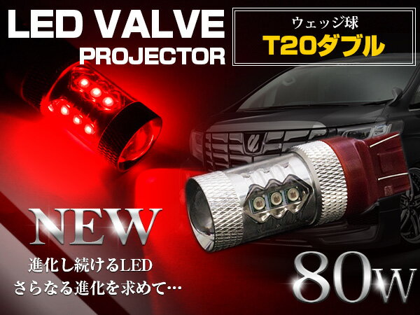 CREE製 XB-D LED 80W T20 ダブル球 レッド ブレーキランプ レッド 赤 単品 1個 【ブレーキライト バルブ ポジション球 LEDバルブ 交換球 CREE】