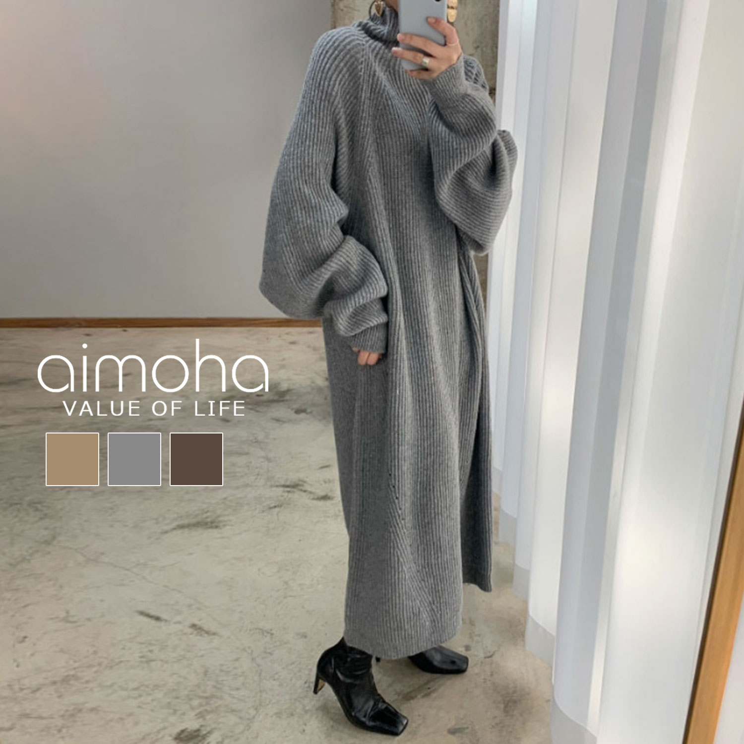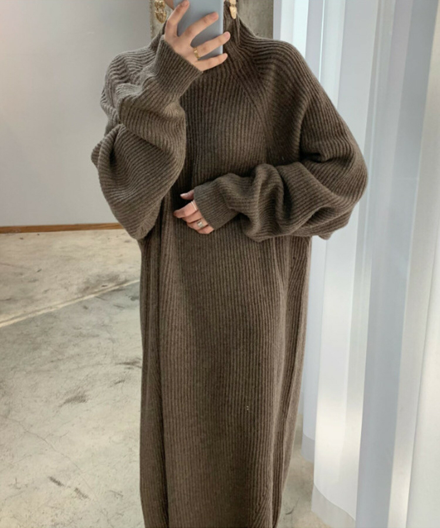 【OUTLET★特別価格】ワンピース ニット レディース ニットワンピース ロング ロング丈 ハイネック ゆったり 体系カバーストレッチ 滑らか ロングワンピース 秋冬 マキシ ボリューム袖 韓国 ライク 【ハイネックで首周り暖かニットワンピ】